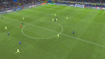 国米的进攻,小图拉姆在右拿球,阿劳霍负责盯防国米9号。不过,阿劳霍的防守依旧缺少强度和对抗,只是简单的跟随,小图拉姆闪转腾挪,连续转身、变向,盘带如同梅西、内马尔一样娴熟——原因就是阿劳霍施压不够。小图拉姆轻松转身送倒三角,塔雷米做球,弗拉泰西破门。